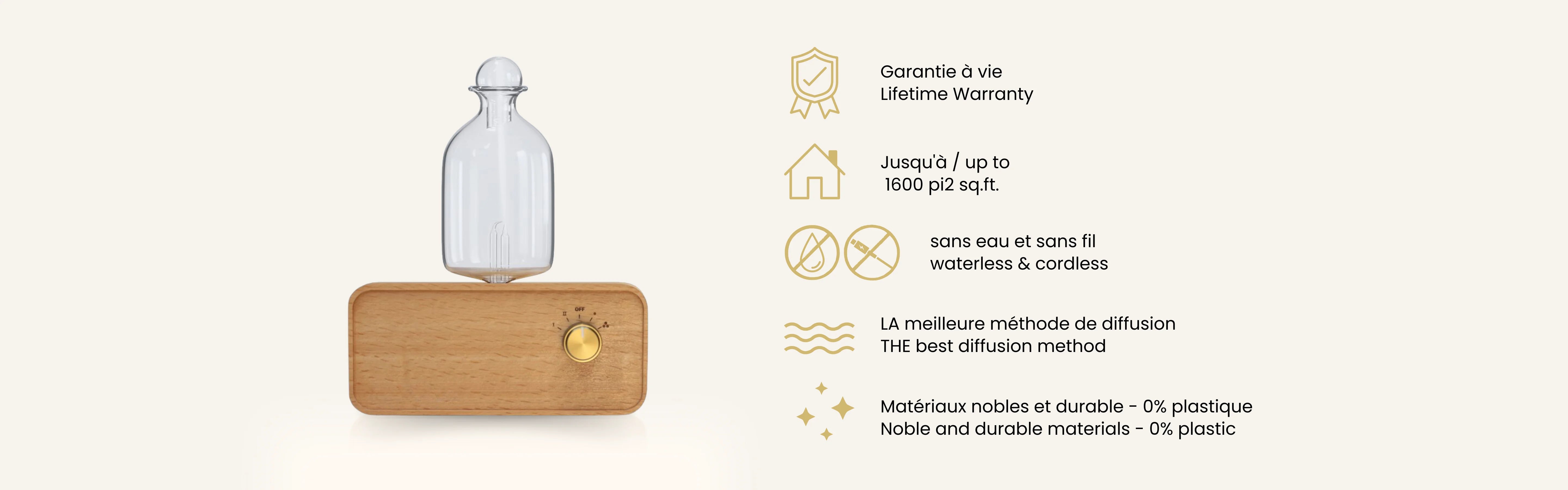 " Bien plus qu'un diffuseur de parfum décoratif, c'est un investissement dans la qualité de l'air que je respire et dans mon bien-être mental et émotionnel." - Noémie B.