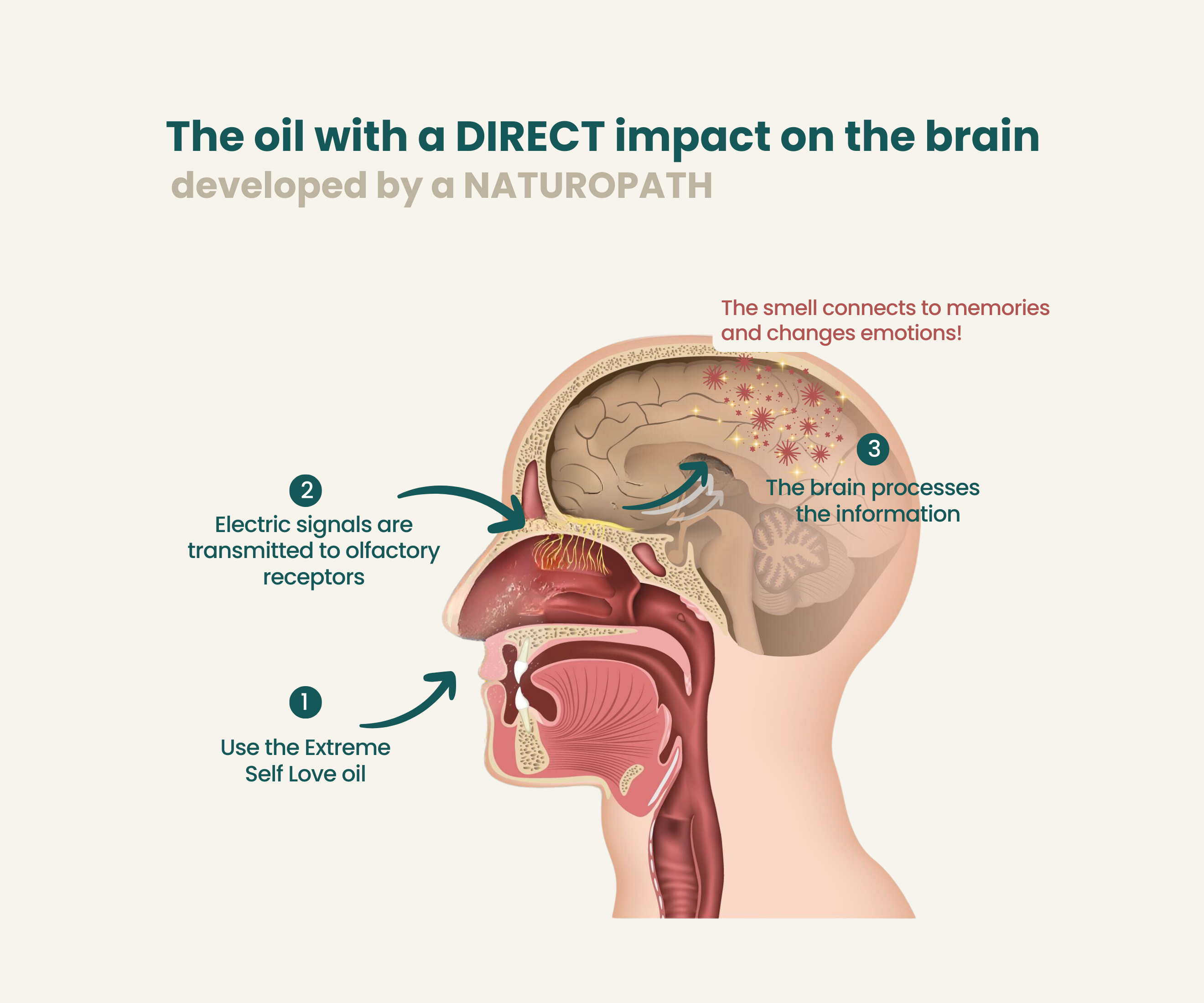 Aux extraits de 8 huiles précieuses sélectionnées pour stimuler la partie du cerveau responsable de la confiance en soi et de l'amour de soi.