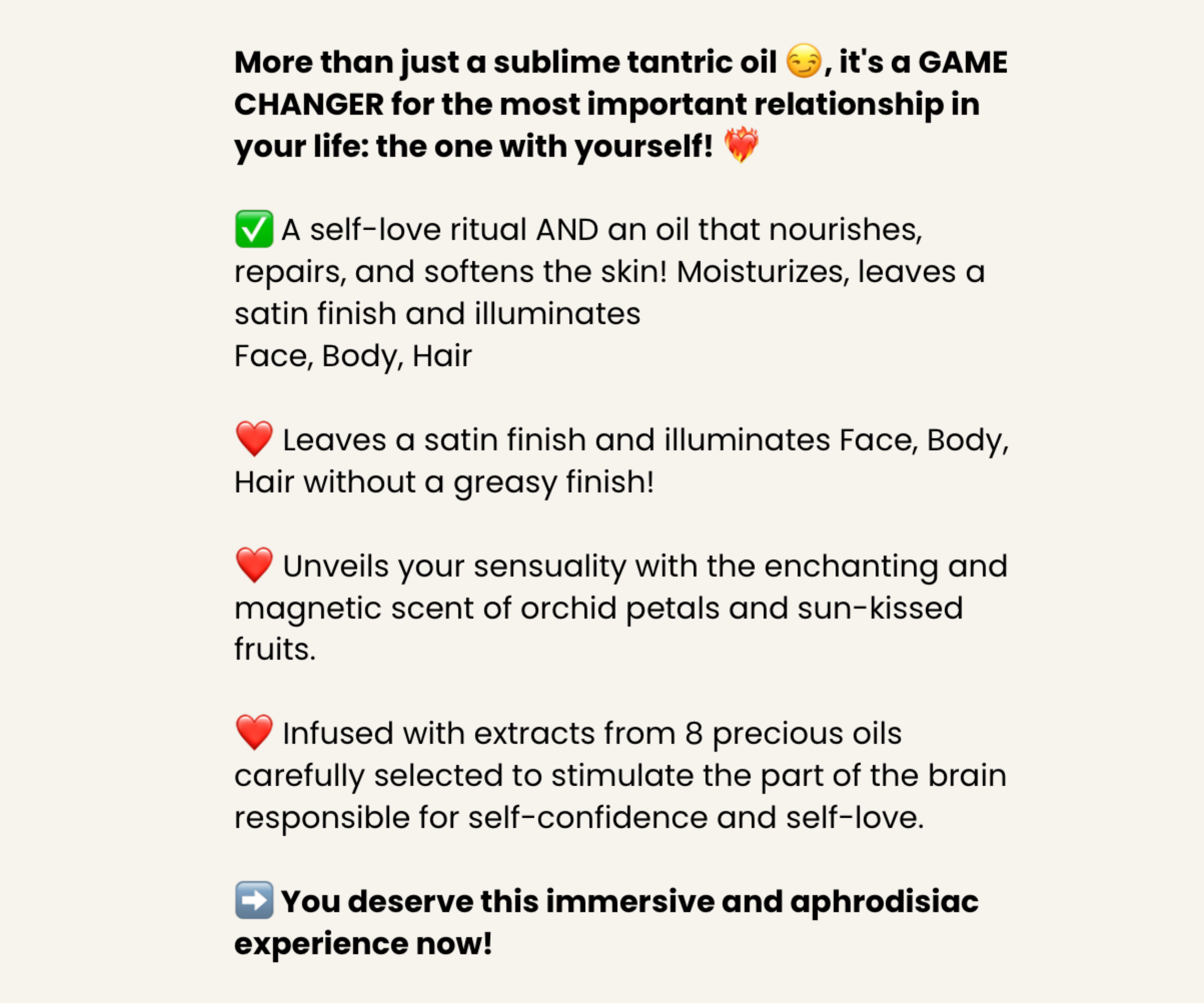 ✨ This product is more than a multi-purpose oil that moisturizes and repairs the skin, it is a self-love ritual that will help you connect to your senses, yourself, and/or your partner.
