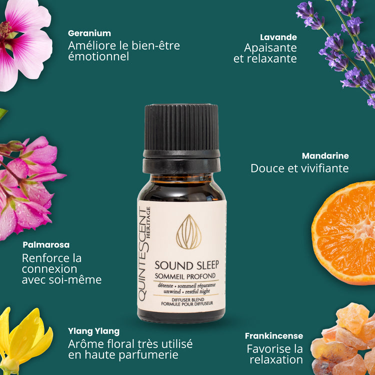 - Mandarine (Madagascar): favorise la relaxation, apaisant ainsi les pensées agitées pour un sommeil serein.