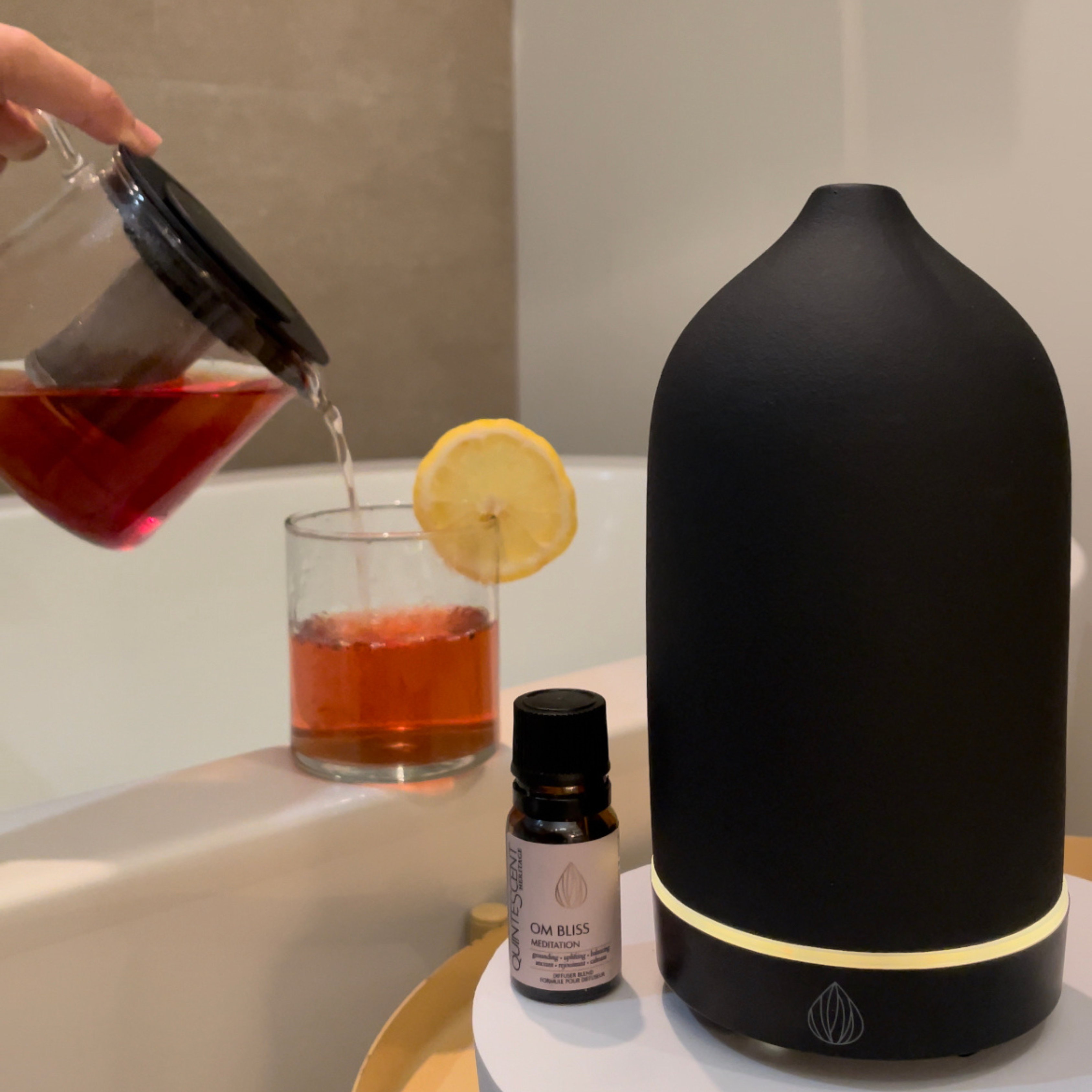 Pillow Talk : Sensual and comforting, this diffuser blend combines the delicacy of vanilla with the power of vetiver. Inspired by intimate discussions where hearts open, this blend calms and relaxes while improving sleep and supporting emotional balance.
