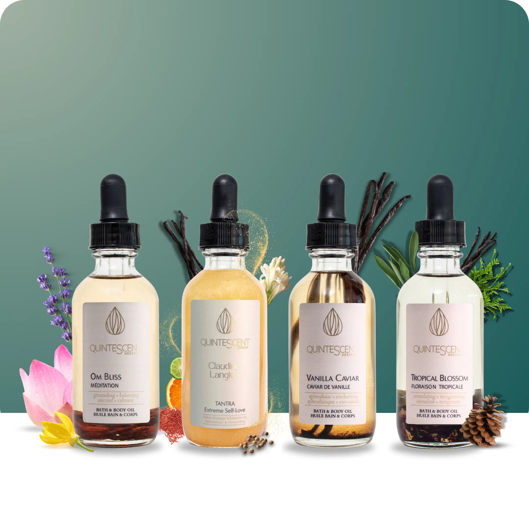 Choose 4 Bath & Body oils from our luxurious selection of blends, each designed to elevate your self-care routine: