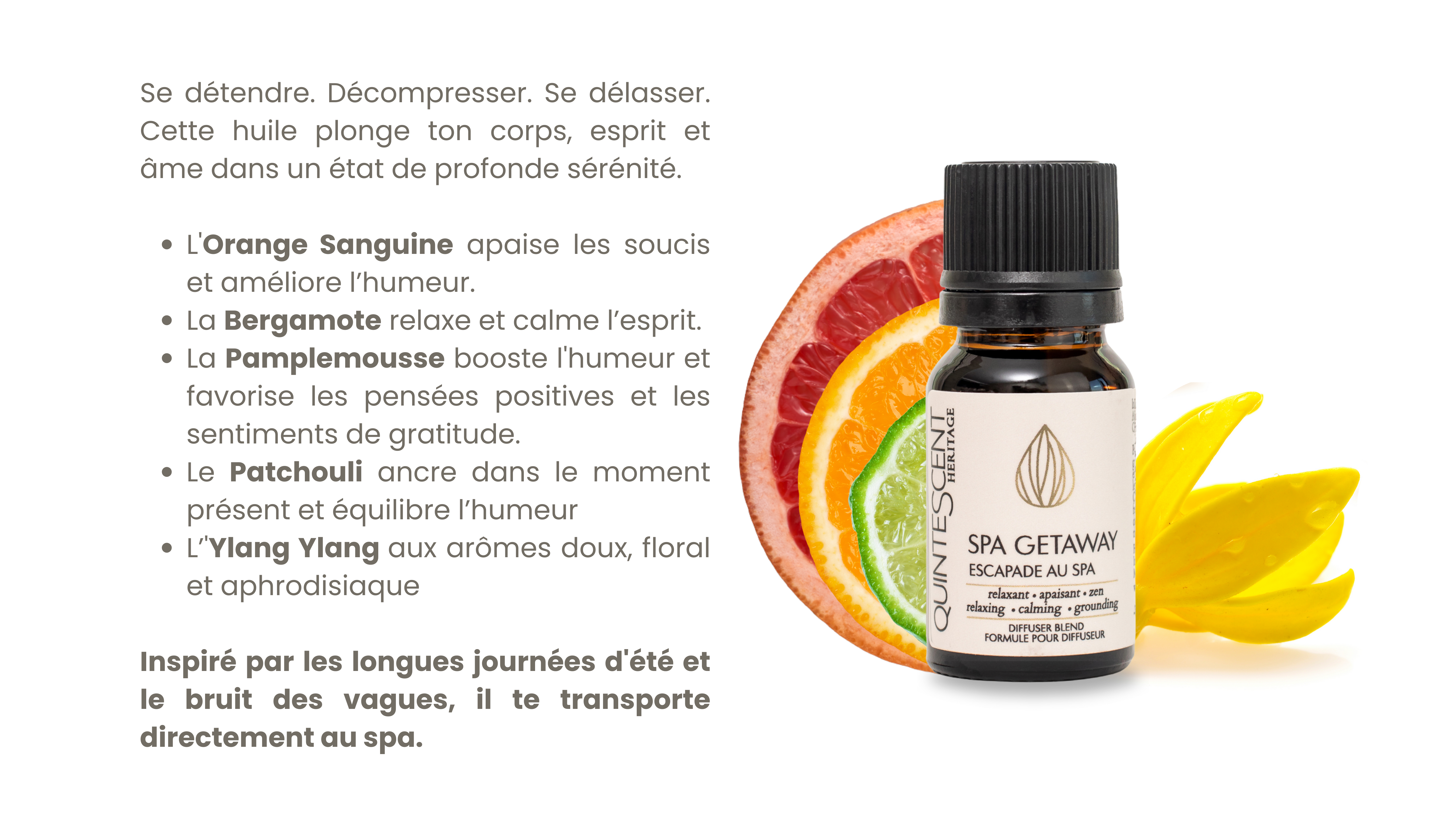 - Organic Bergamot essential oil (Madagascar): a refreshing and stimulating oil to promote relaxation and calm the mind.